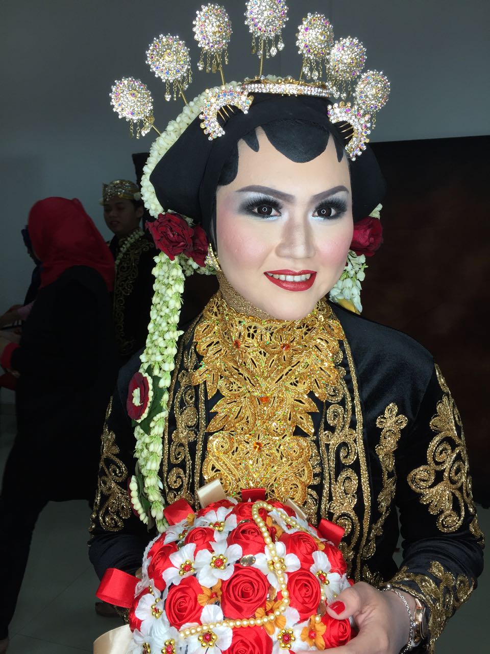1. TATARIASÂ PENGANTIN AKAD NIKAH / PEMBERKATAN 2. BUSANA PENGANTIN AKAD / PEMBERKATAN 3. ACCESORIES PENGANTIN (SATU ADAT) 4. BUNGA MELATI PENGANTIN (SATU SET) 5. TATARIAS IBU PENDAMPING (2 ORANG) 6. ACCESORIES IBU PENDAMPING (2 SET)